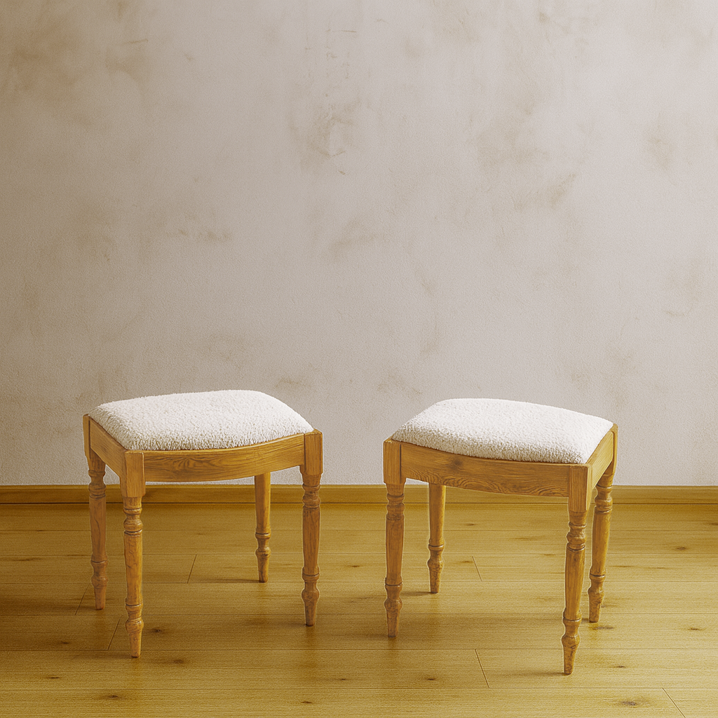 Vintage Swedish Lambs Wool Pine Stools (Pair)