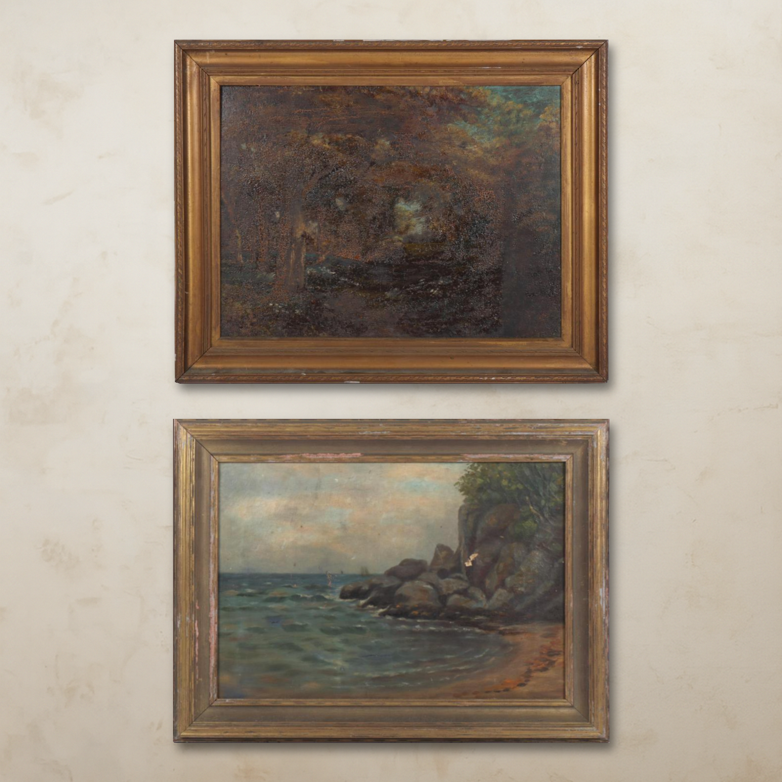 Invite a quiet-luxury mood into your next project with this rare, harmonious duo by Dutch-American painter John Boer (1871–1937). Sold together, the works create an effortless dialogue of calm and energy—an interior designer’s dream for layering visual texture.